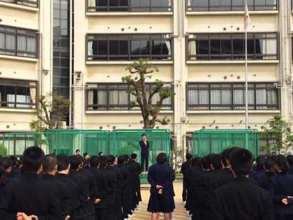 先週は認証式があり、各クラスでは班活動が始まり、18日には部活動編成もありました。部活動の体制が整い、本格的に始動しました。この土日と大阪市中学校体育連盟の春季総合体育大会予選があり、男女バスケットボール部が、東中体育館で、試合に挑みました。校長先生も応援に行きましたが、その時に感じたことをお話します。先ほども話したように、部活動編成があり、1年生の皆さんもたくさん入部してくれました。バスケットボール部の様子を見ていましたが、1年生の皆さんが、先輩方のために試合の準備や応援を本当に一生懸命してくれていました。また、2年生は、3年生の支援をし、また試合に出場しながら、丁寧に1年生の面倒を見てくれていました。3年生は最高学年として、プレーに専念し、素晴らしい試合を見せてくれました。1年生の皆さんは、わからないことも多く、しんどいことや辛いこと、苦しいこともこれから多くあると思います。しかし、辛抱してください。せっかく夢をもって入部した部活動、あきらめずに努力すれば必ず自分たちの時代が来るのです。2年生は1年生を大切にし、しっかり教えてあげてください。3年生は後輩たちの憧れとなり、慕われ、敬われるように頑張ってください。先輩面だけして、わがままや傲慢さを出してはいけません。後輩たちは部の存続に繋がる大切な宝です!3学年がそれぞれの役割を果たし、夢や目標に向かって、自分自身を最大限に磨くいことができる、努力が報われるそんな部活動にしていきましょう!!