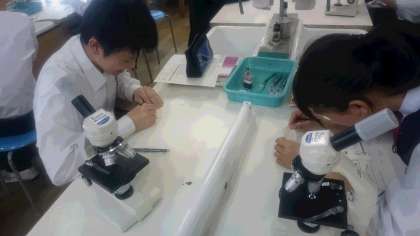 久々の顕微鏡観察ですが、さすが3年生!操作はスムーズでした。