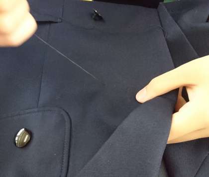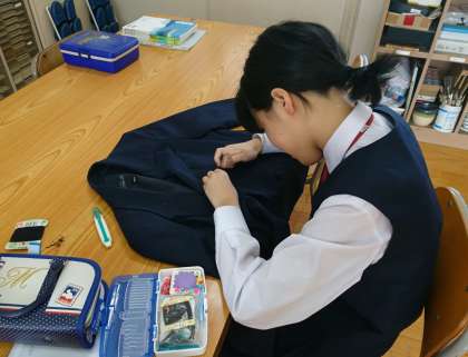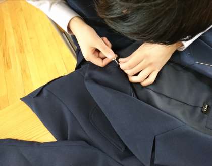 今朝、ボタンを購買部に買いに行き、抽出授業でそのボタンを縫いつけました。