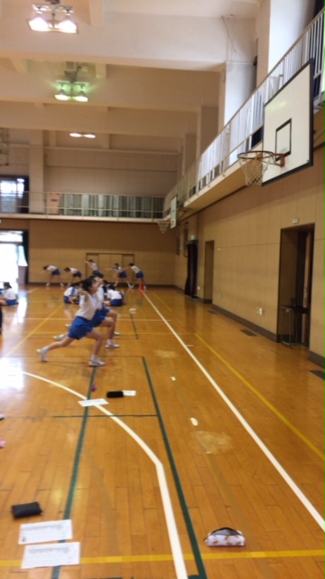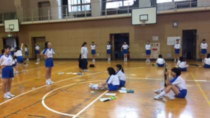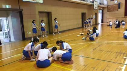 グループに分かれて、細かい動きまでチェックし、東中体操に磨きをかけています。