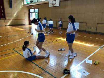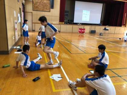 1時間目、2年5組の保健体育では「体つくり運動」に取り組んでいます。体つくり運動とは日常の生活やスポーツに応じて、いつでも、どこでも、誰とでも手軽に行うことができる運動のことを言います。本時は体力を高める運動の中で、柔軟性を高める運動と巧みな動きを高める運動を班ごとに学習しました。運動を始めると笑顔で、わいわい楽しみながら取り組めています。笑顔で楽しみ、心をリラックスさせることがスポーツの最大の効果だと思います。頑張れ2年生!
