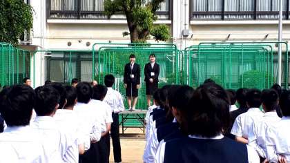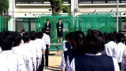 続いて、今日から8回に渡って、大阪成蹊大学の学生さんがインターンシップに来られます。そのお二人の紹介がありました。