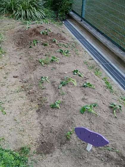 本日は、春植えのひとつとして、サツマイモの苗を植え付けました。今日参加出来た部員ひとりひとりが、一本ずつ植えました。
