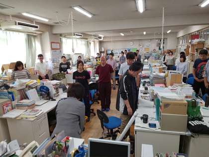 全校集会の後、職員室ではICT支援員さんの紹介が行われました。