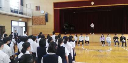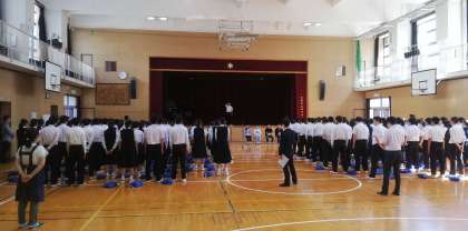 東中生による校歌斉唱の様子です。