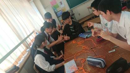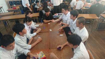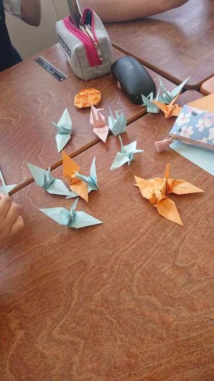一緒に鶴を折ったり、あやとり、坊主めくりをしています。