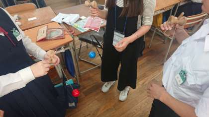 けん玉と福笑いの様子です。