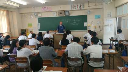 海美中学校の先生が授業内容を訳してくだり、生徒の皆さんもしっかりきいています。