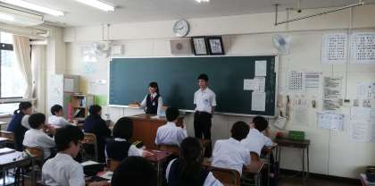 海美中学校の皆さんとのお別れ会を終えて、教室に戻ってきた学級代表より、お別れ会の様子を報告してもらいました。