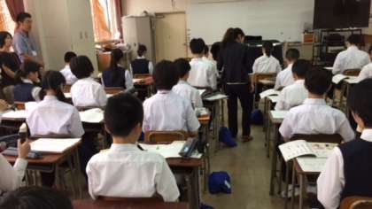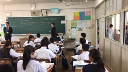 1年4組では、難波先生と西俣先生による英語の授業が行われています。