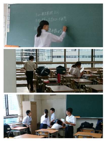 朝読までの時間には、授業準備、友達と話、自習などをして過ごしています。