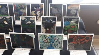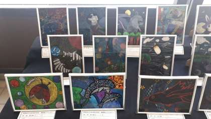 東中ホールには、3年生の皆さんが美術科の授業で製作した作品が展示されています。どの作品も個性豊かに表現されています!