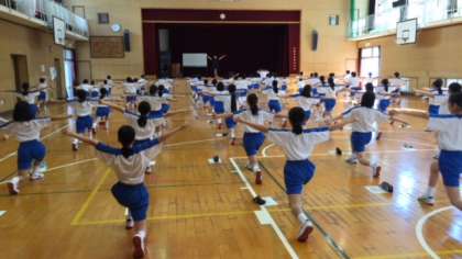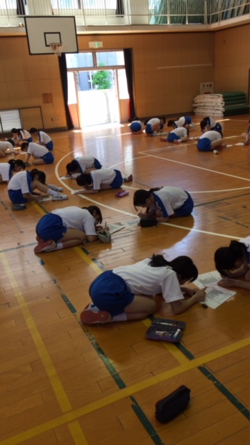 1年生の体育は東中体操の確認と、ウォーミングアップに行うトレーニングを行いました。
