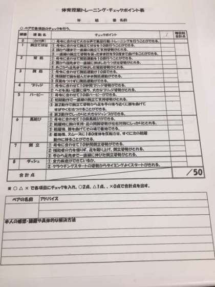 トレーニングはペアで相互チェックを行い、お互いにアドバイスをしてトレーニングの質を高めています。