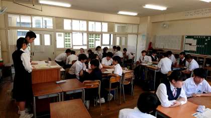 まずは班長の代表からクラス全体に説明をしてから、班にわかれてルートを考えています。