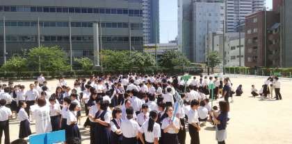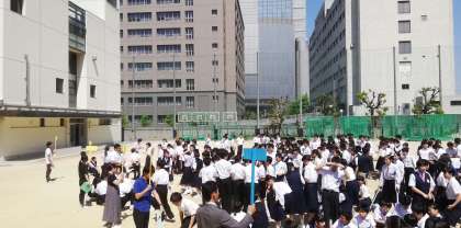 30度を超える暑さの中、全校生徒は速やかに動き、短時間で編成することができました。