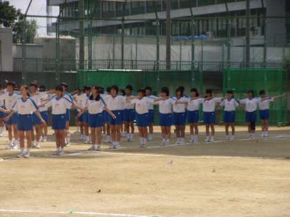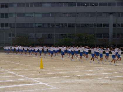 東中にはラジオ体操第1,2とは別に、「東中体操」があります。歴史を重ねてきた東中のなかで、体育科で長らく取り組んでいる独自の体操です。これまで東中で学んできた多くの先輩から受け継がれ、在校生がしっかりと引き継いでいます。まさに東中百景!とも言えます。