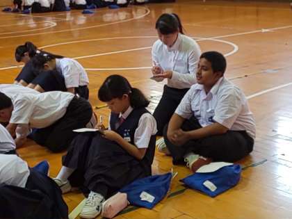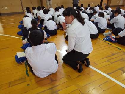 教育実習生も一泊移住に向けた取り組みについて、先生方から生徒への指示のし仕方を一生懸命に書き留めています。