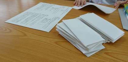 学校給食のストローごみを処分する際に各学級で使う「リサイクル封筒」を作っています。
