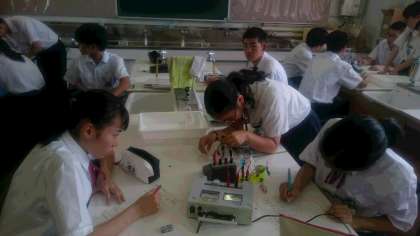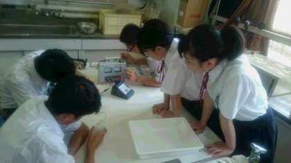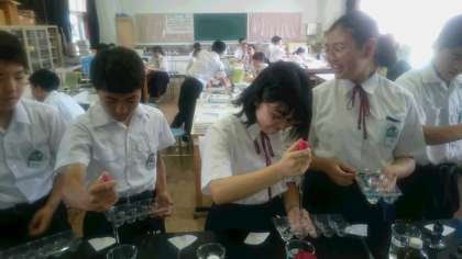 班で分担を決めて実験をしています。液体をピペットで取り分ける作業が楽しい!との声もありました。