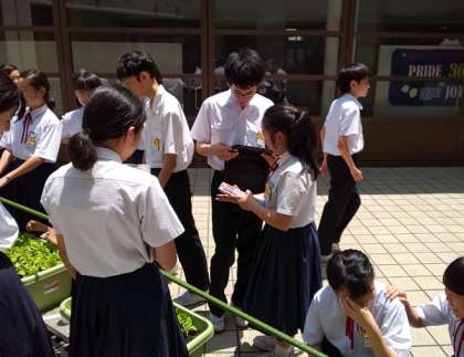 先日植えた種もすくすくと育ってきています。その発育の様子を仲間とともに観察し、記録として、ワークシートに記入する生徒やタブレットを活用し記録する生徒など、役割を分担しながら授業に取り組んでいます。
