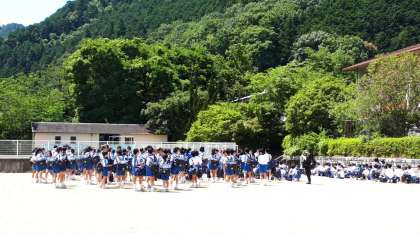 天気は快晴ですが、気温が上昇してかなり暑いですが、東中生は元気です!