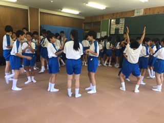 無言で誕生日の順番に円になって並んでいるところです。ジェスチャーでみんな頑張って伝えあっています。