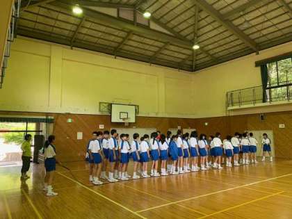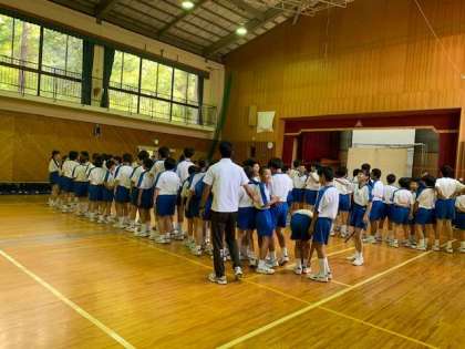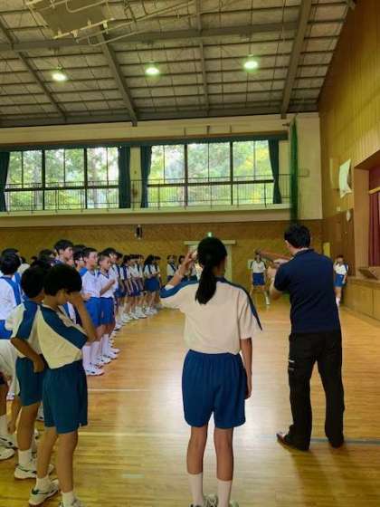 体育館では、1.2.3組が大縄跳びの練習をしています!