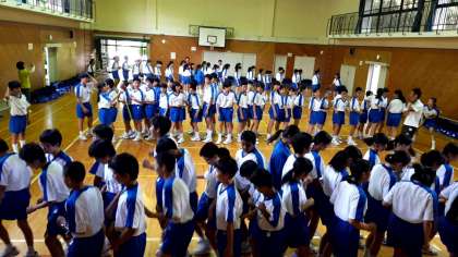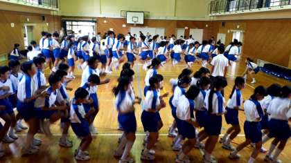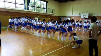 体育館では、1、2、3組が大縄練習していますが、なかなか苦戦しています!