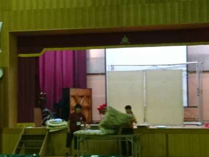 野外学校のスタッフの方から、丁寧に寝具の使い方を教えていただいています。