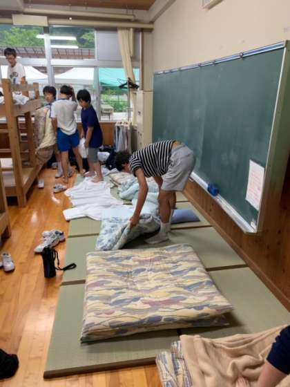 6時半に起床し、朝のつどいに向けて準備をしています。