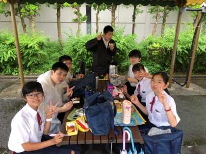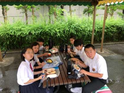 雨をしのいで、楽しくいただきます!