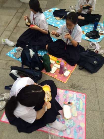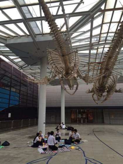 自然史博物館。クジラの下で昼食。