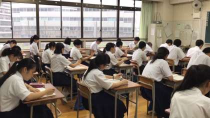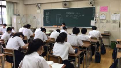 しおりの行程を見ながら、美化係の仕事を確認しています。