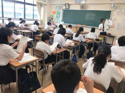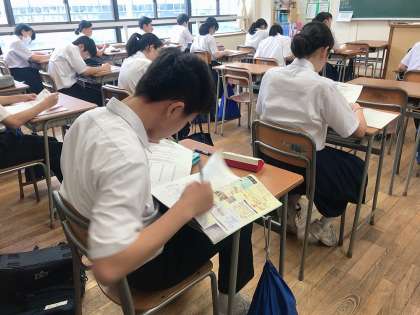 3年生はプレチャレンジテストを終え、6時間目は修学旅行の係別で会議を行っています。