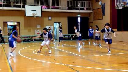 女子のゲームが始まりました。白色のゼッケンが東中学校です!ナイスカバーディフェンスで突破を許していませんが、男子と同様になかなかシュートがきまりません。
