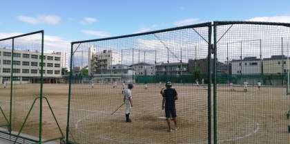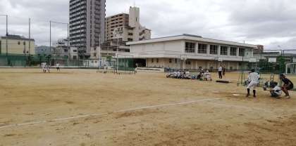 本日、東中野球部は大阪市立中野中学校まで練習試合に来ています。