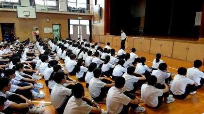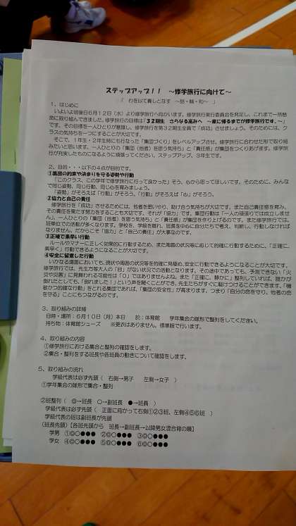明後日出発となる修学旅行に向けて32期生は「ステップアップ〜修学旅行に向けて〜」と題して、集合隊形の確認をしています。