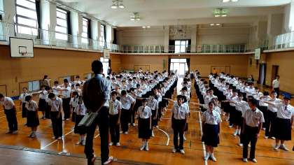まずは出発式や解散式、2日のフィールドワークで必要となる班整列です。