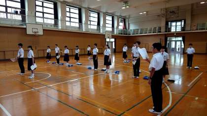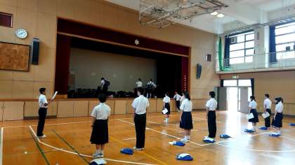 朝から体育館では、修学旅行実行委員会のメンバーがセレモニーやあいさつのリハーサルを行っています。