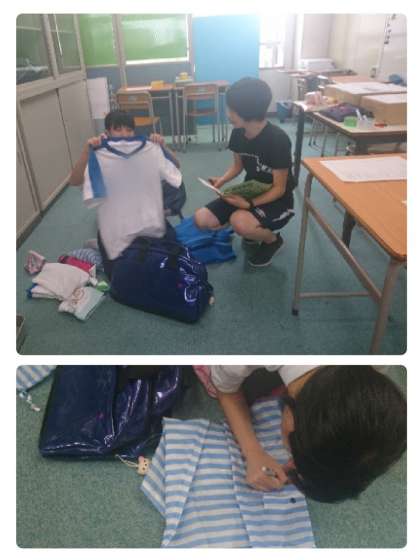 持ち物への記名ができていないものがあったので、ひとつひとつ確認しました。これで4限目の事前指導も安心です!いってらっしゃい!