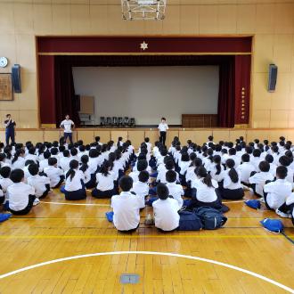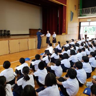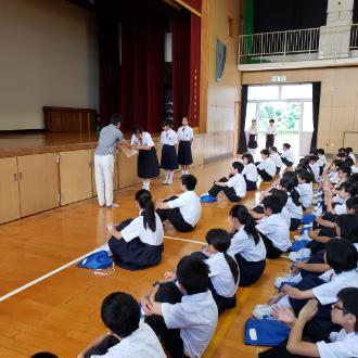 図書委員からの連絡のあと、一泊移住フォトウォークラリーの表彰と大縄大会の表彰がありました。