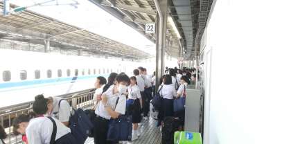ホームで新幹線の到着を待っています!もうすぐ到着です!