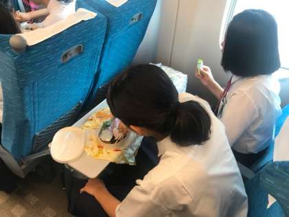 待ちに待った昼食の時間も楽しそうな笑顔いっぱいです。