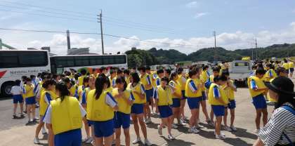 ライフジャケットを着用し、いよいよ船に乗り込みます!