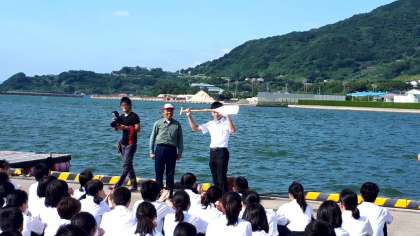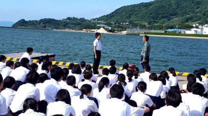 ペーロン体験が終わり、閉会式が始まりました。お世話になったスタッフの方からのご講評、成績発表、修学旅行実行委員からのお礼のあいさつです。