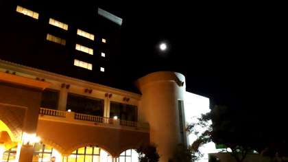 ホテルの各部屋の電灯も教員や添乗員さんの部屋以外は、真っ暗です。夜空には月がきれいに光っています。明日も晴れの天気です。