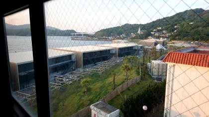 窓からの外の様子です!気持ちのいい天気となっております。海が見え、青空も広がっています。平和セレモニーやフィールドワークには最高の1日となりそうです。反省・課題を改善し本当に更なる高みを目指す1日にしてください!