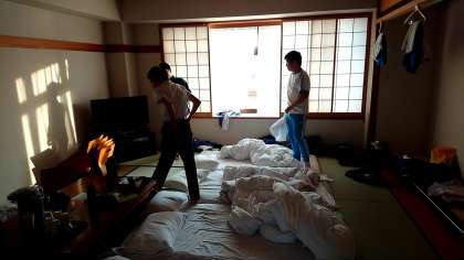 6時を過ぎみんな起き始めました。着々と出発準備や片付けをしています!みんな早起きです。
