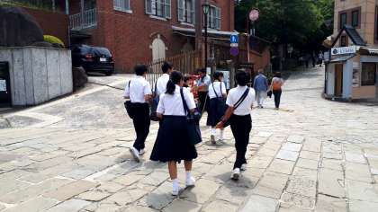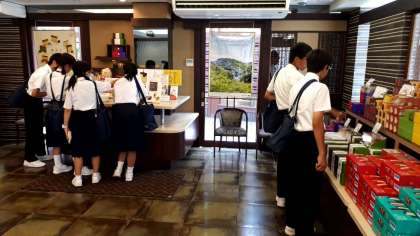 班が崩れることなく、昼食を済ませて、大浦天主堂に一番に到着した班が、お土産購入しています!